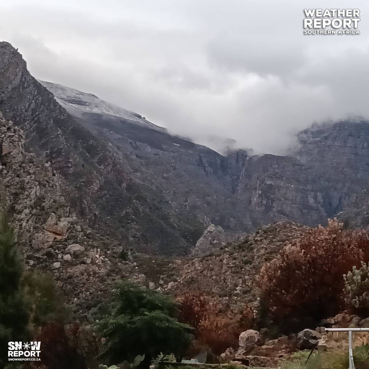 Snow has fallen in the Western Cape as per our latest forecast, which is available here. More photographs can be found by scrolling down this page. More snowfall is possible over the next few days. Please be sure to send photos and videos to us via whatsapp and also tell us where and when they were taken. See below for a link to our whatsapp channel but since the link does not work in the instagram app you will need to send us a whatsapp message and we'll send you a link. Follow our channels