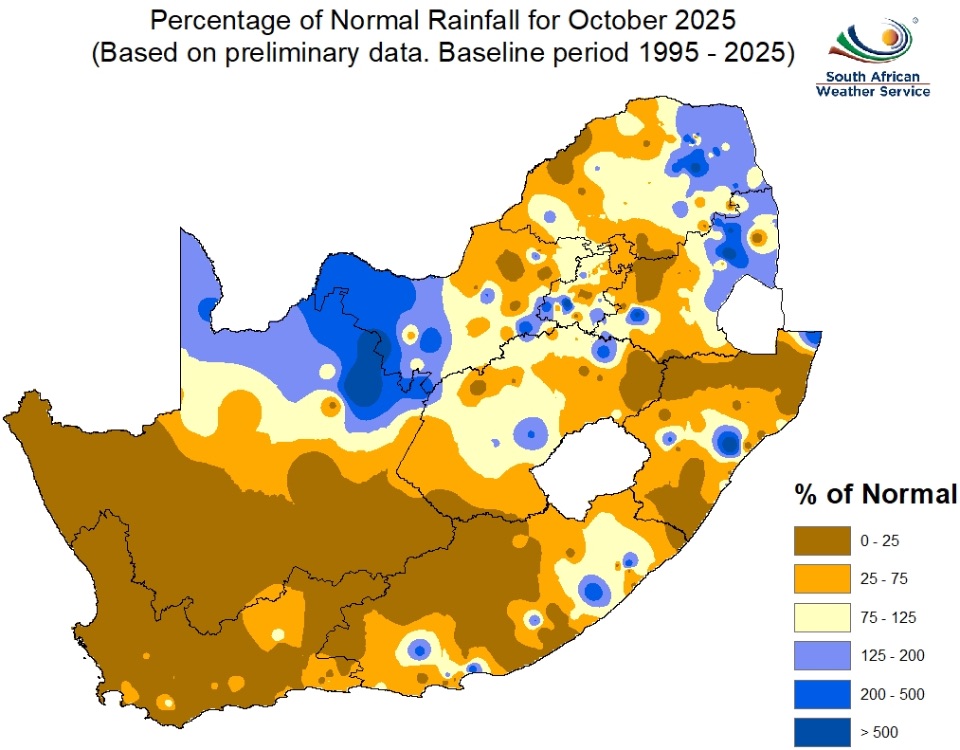 One of the wettest Octobers in years in parts of South Africa13 November 2025By Staff Writer